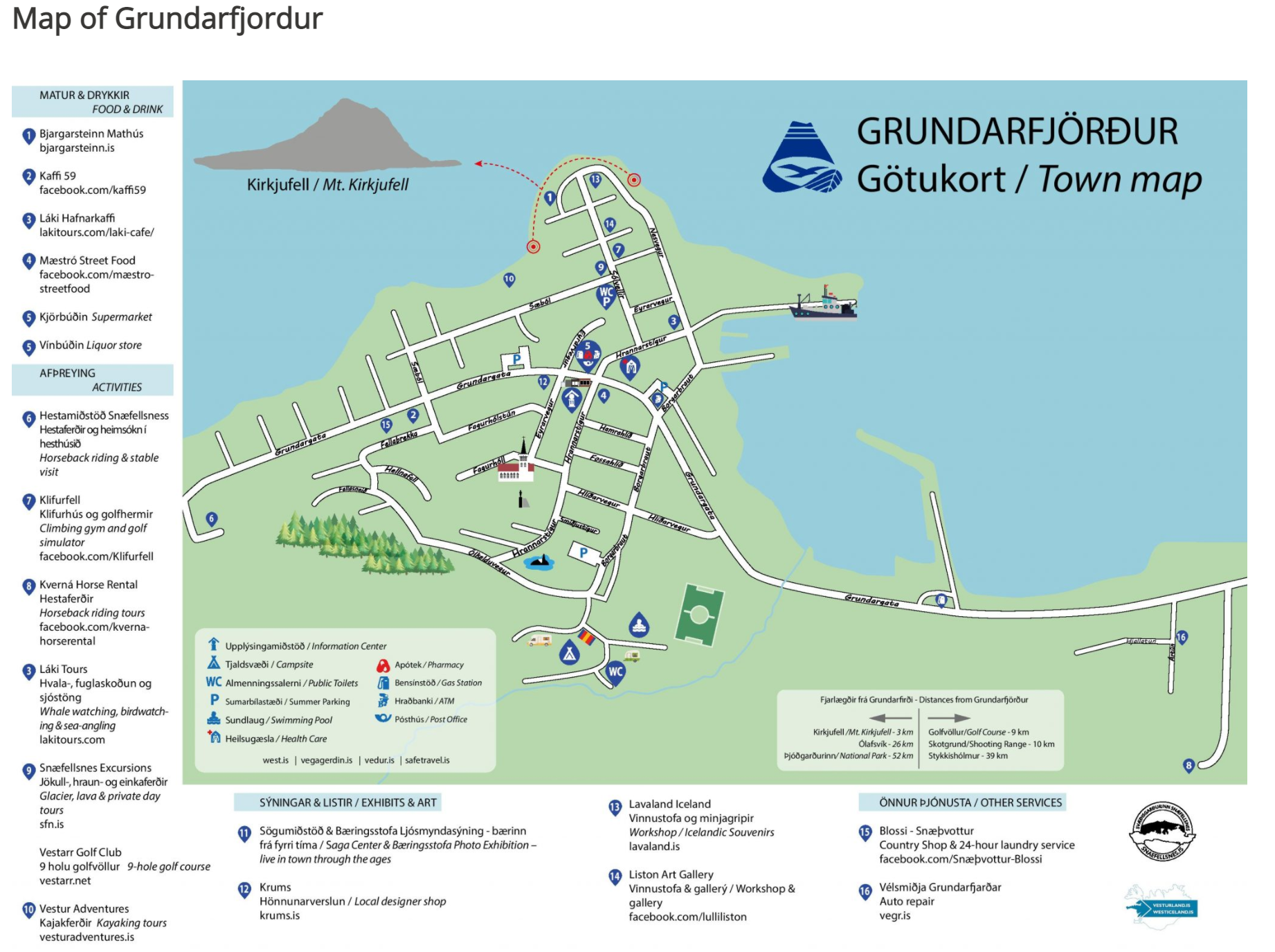 Grundarfjörður is a beautiful and quiet town in Snæfellsnes. Home to the famous mountain Kirkjufell.